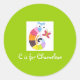 Aufkleber mit hungrigem Chamäleon und Schmetterling.