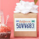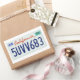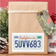 2007 California Nummernschild. Hex-Codes: blaue Zahlen 0D1E6E, rot DE2507, grüner Aufkleber 58C1B3.
