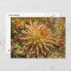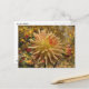 Lassen Sie sich von dieser Postkarte verzaubern, die einen spektakulären Kakteen mit blühenden Dahlien in Lachs-, Orange-, Gold- und Hellgelbtönen enthält. Weit im Hintergrund sind mehr Dahlien und ein Apfelbaum voll von roten Früchten.