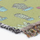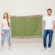 Trendige und moderne Decke mit niedlichem, nahtlosen botanischen Muster. Verschiedene blühende Kakteen und Sukkulente in blauen Töpfen zeichnen die Abbildung auf grünem Hintergrund. Ideal für Kakteen und Sukkulenten-Fans.