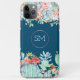 Dieses Handy-Gehäuse zeichnet sich durch ein modernes Blumendesign aus. Imitate mit goldfarbenem Monogramm auf einem ozeanblauen Hintergrund mit Kakteen, Sukkulenten und Korallenfarben-Blume. Personalisieren Sie es mit Ihren eigenen Initialen.