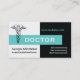 Caduceus Doktor moderne minimalistisch schwarz, weiß, aqua feminine Visitenkarte mit einem schwarzen Caduceus Doktorschild auf schwarzem und schwarzem Hintergrund und dem Text "DOCTOR" in einer aqua blauen Band. Perfektes berufliches medizinisches Visitenkartendesign für Ärzte.