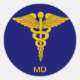 Aufkleber für Ärzte. Dieser Aufkleber ist mit einem Goldkadukus und den Buchstaben "MD" geschmückt.
