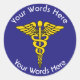 Dieser benutzerdefinierte Aufkleber ist mit einem goldenen Caduceus dekoriert, das mit einer Wortwahl über und unter angepasst werden kann, mit der Sie ihn mit dem Namen einer Person, eines Ortes, einer Position usw. personalisieren können.