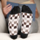 Alternating brown and beige checkerboard pattern creates a repetitive, symmetrical design. The warm tones give a cozy, classic feel.