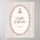 Cute and whimsical 'Cafe Bebe' French cafe inspired baby shower 'Cards & books' sign with a soft brown striped background and a hand drawn illustration of a coffee cup with a brown bow - perfect for a gender neutral, coffee themed baby shower with a vintage, Parisian café style.