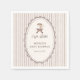 Cute and whimsical 'Cafe Bebe' French cafe inspired baby shower napkin design with a soft brown striped background and a hand drawn illustration of a coffee cup with a brown bow - perfect for a gender neutral, coffee themed baby shower with a vintage, Parisian café style.