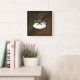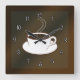 Coffee Cup © Sunny Mars Designs. Coole individuelle Schokolade oder braun große quadratische "Kaffeezeit" rund um die Uhr mit einem modernen, trendigen, stilvollen, niedlichen, stilvollen grafischen Illustrationssymbol-Design einer dampfenden Tasse oder Tasse Kaffee und Untertasse.