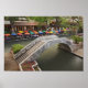 Café im Freien entlang Fluss Walk und Brücke über Poster