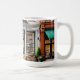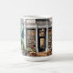 Perfektes Geschenk für den Reise- und Kaffeeliebhaber. Dieses Bild zeigt ein gemütliches Café-Schaufenster in Chicago, das modernes Design mit urbanem Charme verbindet. Das Café verfügt über große Glasfenster und eine schwarz-gerahmte Türe, ein Set an einer hellen Ziegelfassade mit Blume und einer subtilen Vegetation. Ein gepflegter Außenbereich mit modernen Holztischen und -stühlen lädt zum Entspannen auf dem belebten Bürgersteig ein. Die Kulisse zeigt die ikonischen Bauelemente Chicagos, darunter Feuerflüge und Einblicke in große Gebäude in der Ferne. Die helle, saubere Farbpalette aus knalligem Weiß, hellen Holztönen und grünen und roten Pop aus den Pflanze verleiht diesem urbanen Rückzugsort eine frische und einladende Atmosphäre.