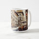 Perfektes Geschenk für den Reise- und Kaffeeliebhaber. Die Aquarellmalerei zeigt ein kleines Café in einer engen Gasse in Florenz, Italien. Die Szene ist gerahmt von den historischen Florentiner Gebäude, die mit aufwändigen Steinarbeiten und Renaissance-architektonischen Details geschmückt sind. Im Außenbereich des Cafés finden sich zahlreiche Touristen und Einheimische, die in lebhaften Gesprächen verlobt sind, während Sie traditionelle italienische Espresso und Gebäck genießen. Die Blume ist mit einem Korb geschliffen, die Wäsche ist geschmückt und das italienische Ambiente ist im Wesentlichen städtisch geprägt. Das Gemälde verwendet eine weiche, erdige Farbpalette verbrannten siennas, warmen Gelb und verblassten Grüntönen, die den historischen und lebendigen Charme von Florenz noch verstärkt.