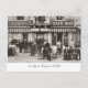 Ein herrliches Foto von c1900 bis 1910 einer Café-Straßenfront in Frankreich. Ich habe keine Ahnung, wo es ist, es könnte Paris oder eine große Stadt sein. Es gibt zwei gut gekleidete Damen mit Sonnenschirmen und einen Mann, der an einem Tisch sitzt. Auf der anderen Seite sind drei Männer und ein kleiner Junge, stehend im Hintergrund sind zwei Mitarbeiter des Cafés Bar, und ein junger Mann. Gleich nebenan befindet sich ein Café (Friseur), in dem zwei Gruppen von Personen im Freien stehend sind. Die Damen haben einen winzigen Hund. Über dem Salon befindet sich ein Schild Sprichwort Archier, und in der Mitte, Arrivage d'huitres tous les samedis - Austern kommen jeden Samstag an. Über dem Café und Salon befinden sich drei Fenster mit Balkon auf der mittleren. Die Leute auf dem Balkon wurden zugeschnitten, aber man kann noch das Gesicht eines kleinen Jungen sehen, und im rechten Fenster hält jemand eine Zeitung mit dem Wort Journal darauf. Auf der rechten Seite des Cafe Bar schilds, ist ein altes bemaltes Schild, aber ich kann nur die Worte Café, Vins und möglicherweise Chez Alise.