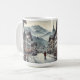 Perfektes Geschenk für den Reise- und Kaffeeliebhaber. Ein Aquarellbild mit einem stimmungsvollen Blick auf die Straße in einem kleinen Café in Interlaken, Schweiz. Die Szene fängt ein malerisches und lebhaftes Café ein, in dem die Einheimischen ihren morgendlichen Kaffee vor dem Hintergrund weit entfernter Berge genießen. Die Farbpalette ist gedämpft, mit weichen Grau-, Blues- und Erdtönen, die die ruhige und stimmungsvolle Atmosphäre verstärken. Menschen in warmer Kleidung wirken entspannt und inhaltlich, perfekt in die ruhige Schweizer Umgebung integriert. Diese Darstellung hebt nicht nur den Charme des Cafés hervor, sondern auch die einzigartige lokale Atmosphäre von Interlaken.