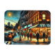 Perfektes Geschenk für den Reise- und Kaffeeliebhaber. Die Aquarellmalerei, die in einem kleinen Café in der Bronx, New York, eine alltägliche Szene des Abends darstellt. Das Bild zeigt das pulsierende Straßenleben mit Fußgängern unterschiedlicher Erscheinungen, von denen einige das gemütlich beleuchtete Café vor dem Hintergrund eines schwachen Stadtbildes betreten oder verlassen haben. Das Vintage Aussehen des Cafés mit sichtbaren Ziegeln und malerischen Dekorationen, beleuchtet von bernsteinfarbenen Lichtern und umgeben von der Blues des Abends, schafft eine gemütliche, urbane Atmosphäre.