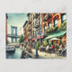 Perfektes Geschenk für den Reise- und Kaffeeliebhaber. Dieses Aquarell-Gemälde bietet einen quintessenten Blick auf die Straße eines kleinen Cafés in Brooklyn, New York, das mit lokalen Charakteren gefüllt ist. Die Szene ist ein Set in einem lebendigen Viertel, wo sich die reizende Fassade des Cafés mit ihren sichtbaren Ziegeln und der malerischen Beschilderung in das lebhafte städtische Umfeld einfügt. Die Außensitze sind belebt, mit Gönnern unterschiedlicher Herkunft, die an verschiedenen Aktivitäten wie Chat, Lesen und Arbeiten auf Laptops teilnehmen, was Brooklyns eklektische Gemeinschaft widerspiegelt. Das Kunstwerk besticht durch eine reiche Palette von Erdtönen, die durch Grüntöne- und Rottöne unterbrochen werden, und verleiht dem Gebiet ein künstlerisches und Vintages Flair. Das Ambiente ist dynamisch und dennoch intim, was den Geist von Brooklyn perfekt verkörpert.