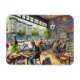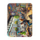 Perfektes Geschenk für den Reise- und Kaffeeliebhaber. Die Aquarellmalerei besticht durch die reizvolle und lebendige Atmosphäre eines Cafés im Missionsviertel von San Francisco. Im Inneren sind die kühnen Wandgemälde, die sichtbaren Ziegelmauern und die rustikalen Holztische ein Set der kreativen Szene. Ein Mann in einer Vintagen Lederjacke entwirft beim Verschwimmen des Espresso Skizzen, und eine Frau mit blauen Haaren arbeitet auf ihrem Laptop neben einem Croissant. Eine Gruppe von Freunden spielt Schach an einem farbenfrohen Ecktisch. Die in einer hellgrünen Schürze verkleidete Barista schmiegt sich hinter der Theke in die Milchküche, die sich in der Nähe einer Vitrine aus neonfarbenem Gebäck befindet. Durch große Fenster genießen Sie die lebendigen Straßen des Missionsbezirks mit lebendiger Straßenkunst und Fahrradfahrern. Im Innenhof serviert ein Mann in einem Strohhut Gönner, der Energie und Charme in dieser einzigartigen Café-Szene vereint.