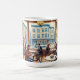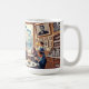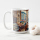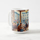 Perfektes Geschenk für den Reise- und Kaffeeliebhaber. Die Aquarellmalerei bezeugt den zeitlosen Charme eines berühmten Cafés in San Franciscos North Beach. Im Inneren erinnern warme Holzböden und die Wände mit Schwarz-Weiß-Fotografien an die Geschichte, während das goldene Licht ein gemütliches Ambiente schafft. Ein Mann in einer braunen Lederjacke genießt Espresso und ein Buch, während ein junges Paar Tiramisu teilt, ihr Lachen verleiht dem Raum Wärme. Eine Frau mit rot-gerahmten Brillentypen an der Theke, wo ein Barista in einer gestreiften Schürze geschickt Espressoaufnahmen zieht. Der nebelige Morgen verströmt durch große Fenster pastellfarbene historische Gebäude und eine vorbeiführende Seilbahn, die das lebhafte Interieur des Cafés mit dem charakteristischen Charme der Straßenlandschaft der Stadt verbindet.
