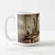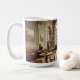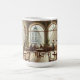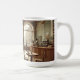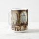 Perfektes Geschenk für den Reise- und Kaffeeliebhaber. Dieses Gemälde zeigt eine Alltagsszene in einem ruhigen Café in St. Petersburg und besticht durch seinen ruhigen Charme. Einige Gäste sitzen an Holztischen und genießen in aller Stille Kaffee und Gebäck, die in ihre friedliche Umgebung eingetaucht sind. Große Gewölbefenster bieten einen malerischen Ausblick auf die historischen Straßen St. Petersburgs, mit verzierten Fassaden in sanften Pastelltönen. Die Inneneinrichtung des Cafés harmoniert mit minimalistischen Möbeln mit Vintagen Details, darunter aufwändige Stuckarbeiten und üppig getöpfte Pflanze. Warme Holztöne, gedämpfte Grüntöne und cremefarbene Weiße dominieren die Palette, während sanfte Tageslichter durch die Fenster strömen und die Ruhe und das einladende Ambiente, das die zeitlose Eleganz der Stadt widerspiegelt, noch verstärken.