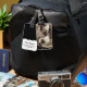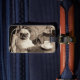 © Jim Dratfield/wildes Apple. Dieses Vintage Bild zeigt einen Mops, der auf einem Stuhl mit einer Schale Kaffee vor ihm sitzt. Der Mops schaut, wie er innerhalb eines Cafés sitzt.