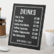 Kostenfreie stehende Preisliste für ein Café oder Restaurant. Verändern Sie die Preise, wie Sie wollen. Zeigt bis zu 6 Artikel und Preise an. Counter-Menü. Schwarz und Weiß.