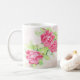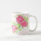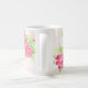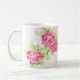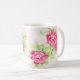 Cafe Rose Design auf einer Tasse. Weiche, rosa Rosen umgeben Ihre Tasse mit einem schönen Garten.