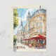 Dies ist eine schöne Postkarte für Reisende, die nach / von Wien, Österreich reisen. Es bietet ein Aquarellbild, das die historischen Straßen und berühmten Cafés von Wien, Österreich, darstellt.