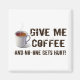 "Gib mir Kaffee und niemand wird verletzt!" Dieses und das Foto einer dampfenden heißen Tasse Milchkaffee wird sogar dem dummen Zuhause oder in Ihrem Büro sagen, dass Sie einen Caffein-Schuss brauchen! Ein lustiges Sprichwort für Kaffeesüchtige im Not leidenden Schriftart
