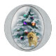 Exquisite Urlaubskunst mit einem bezaubernden Cairn Terrier, stehend vor einem schneebedeckten Weihnachtsbaum mit Ornamenten, die im Mondschein zu leuchten scheinen. Wunderbare Geschenke für Cairn Terrier Liebhaber.