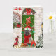Cairn Terrier Hund sitzend außerhalb dekoriert Zuhause mit Weihnachtskranz, Weihnachtsbaum ist eine perfekte Weihnachtsgeschenk Idee für Hundefreunde.