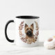 Ein hübscher Herbstkranz in den Farben Zimtbraun, Bräune und Creme umgeben das Aquarellbild eines zauberhaften Cairn Terrier Dog. Das Bild wird zweimal auf der Tasse gedruckt, wobei der eigene Text dazwischen liegt.