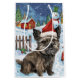Dieses festliche Design spiegelt den fröhlichen Geist der Urlaubssaison wider und besticht durch ein hübsches Jungtier mit einer Weihnachtsmannmütze. Der Hund ist eingebettet in ein winterliches Wunderland, mit einem Schneemann, einem dekorierten Weihnachtsbaum und wunderschön verpackten Geschenken. Schneeflocken fallen sanft ab und geben der Szene eine magische Touch, während die lebhaften Farben der Feriendekorationen eine warme und fröhliche Atmosphäre schaffen.