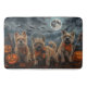 Entfesseln Sie den unheimlichen Geist mit diesem unheimlichen Halloween-Design, das eine Hundepackung unter einem dunklen, mondbeleuchteten Himmel bietet, umgeben von fliegenden Fledermäusen und glühenden Kürbissen. Ideal für diejenigen, die mit ihren wütenden Freunden eine Touch voller Furcht Liebe haben!