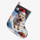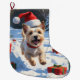 Cairn Terrier läuft in Snow mit Weihnachtsmütze Großer Weihnachtsstrumpf