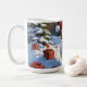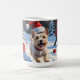 Cairn Terrier läuft in Snow mit Weihnachtsmütze Kaffeetasse
