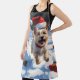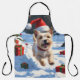 Cairn Terrier läuft in Snow mit Weihnachtsmütze Schürze