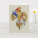 Cajun Lilien-Grußkarte von der Originalvorlage. Spaß und wunderliche Kunst der Krabben, der Garnele, der Panzerkrebse und der Austern, die ganz an einer GoldLilie hängen.