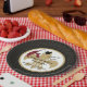 Feiern Sie Ihren Cajun Absolvent in der Art mit diesem personalisierten PapierTeller, der einen Panzerkrebs einen Abschlusshut in einem Schwarzen und in einem GoldLilienentwurf werfend kennzeichnet.