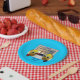 Diese niedlichen Teller haben eine grafische Abbildung mit einem Cartoon-Kuchen-Figuren, die mit Mitten aus Schachofen versehen sind, die mit Holzlöffeln vor einer Ofentür aus rostfreiem Stahl und innen mit einem Kuchenbacken aussehen. Einfach auf Ihren Küchenwettbewerb oder Wettbewerb abgestimmt.