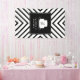 Koordiniert bis 1201Uhr das Cake Monogram Logo mit dem Mod Stripe Muster Bakery Business Card Template. Ihr erster oder geschäftlicher Anfang ist Set in einem lustigen kursiven Skript auf einem silhouetted Kuchen Form für das perfekte Logo. Set auf einem kühlen, modernen schwarz-weißen Streifen Muster für eine lustige Ästhetik. Ideal für Bäckereien, Catering-Unternehmen, Dessert-Koch und vieles mehr. Nutzen Sie dieses individuell anpassbare Banner für Schilder, Lebensmittelständer, Events und vieles mehr. © 1201AM CREATIVE