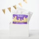 Liebliche handgezeichnet Cartoon-Stück Vanillekuchen mit Schokolade, lila-pink-vereist und individualisierbaren Text für die köstliche Geburtstagsparty Ihrer Kinder! Schön Spaß!