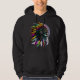 Diseño llamativo y colorido de un cráneo indio nativo con plumas, y en el reverso un indio con capucha. Ideal para el uso diario.