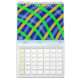 Calendario con diseño de arte digital de variados colores, en cada mes.