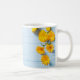 Calendula-Blume: blauer Holzhintergrund Kaffeetasse