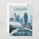 Celebrate the modern energy of Calgary, Canada, with this stylish, vintage-inspired postcard showcasing the city skyline in winter. The design features key landmarks like the Calgary Tower and the distinct new architectural buildings, all dusted with snow, reflecting in the partially frozen river. This travel poster is perfect for lovers of Canadian cities, winter scenes, and contemporary urban art. Ideal for sending greetings, keeping as a keepsake, or framing as modern wall decor.
