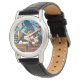 Uhr, Klassische Damenuhr mit schwarzen Lederarmband