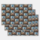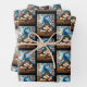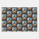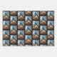 Eine Kalico-Katze, die vor einem Pfauenfenster mit einem roten chinesischen Drachen spielt.
