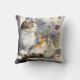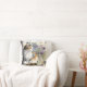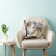 Dekoratorkissen mit dem schönen Gemälde einer Kalico-Katze, die neben einer Vase aus violetten Blumen und einem Fenster sitzt, und das Sonnenlicht strömt in den Raum.