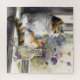Rätsel mit dem schönen Gemälde einer Kalico-Katze, die neben einer Vase mit violetten Blumen und einem Fenster sitzt und das Sonnenlicht ins Zimmer strömt.