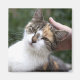 eine schöne dreifarbige Katze mag ein hübsches Haustier auf dem Kopf