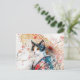 Calico Geisha Katze mit rotem Schirm in chinesisch Postkarte